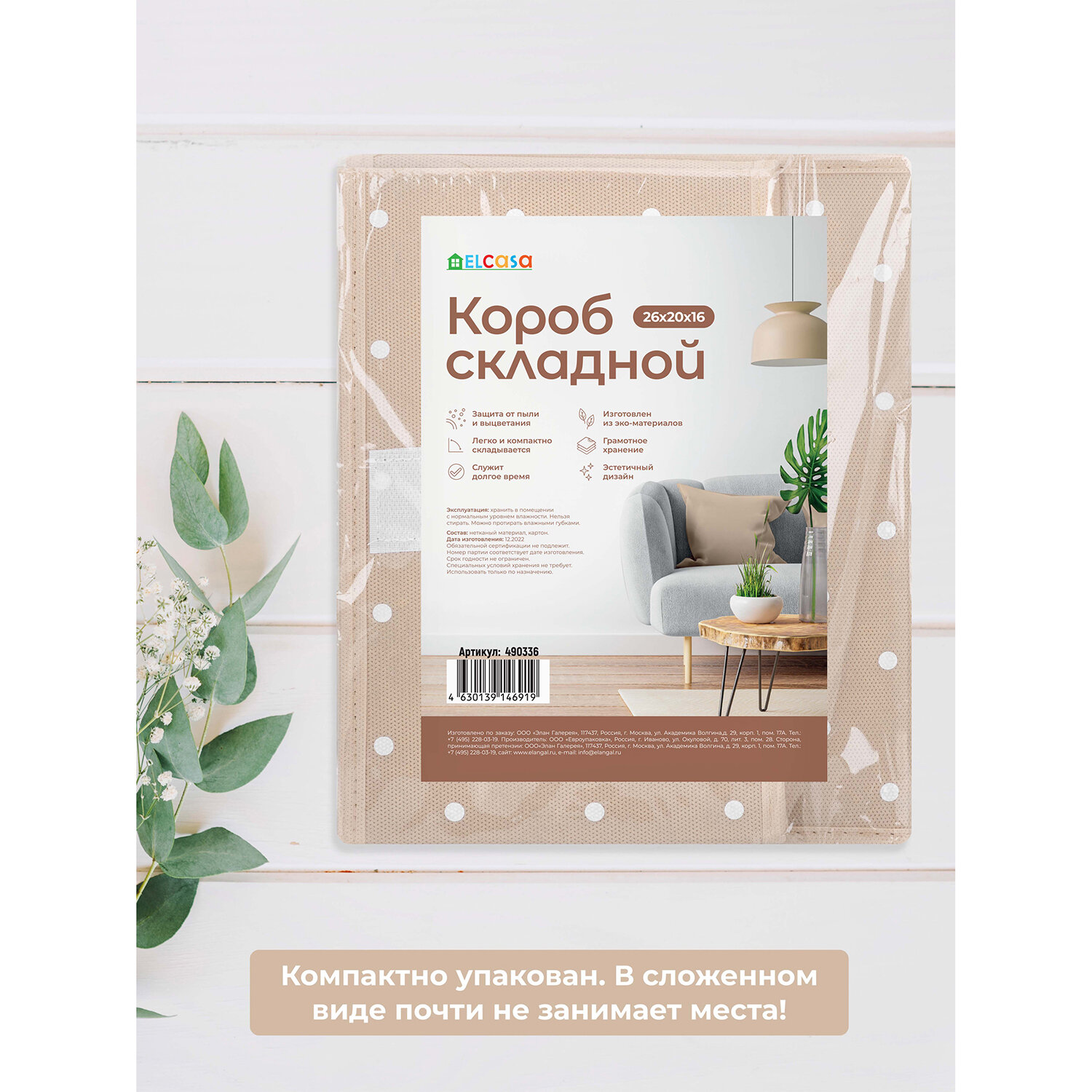 Короб - кофр, органайзер складной для хранения 26х20х16 см EL Casa Бежевый горошек с ручкой, с крышкой на липучке интересное: