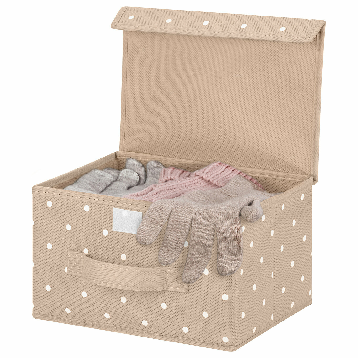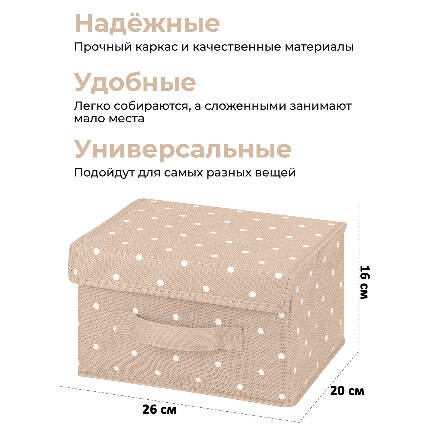 Купить Короб - кофр, органайзер складной для хранения 26х20х16 см EL Casa Бежевый горошек с ручкой, с крышкой на липучке