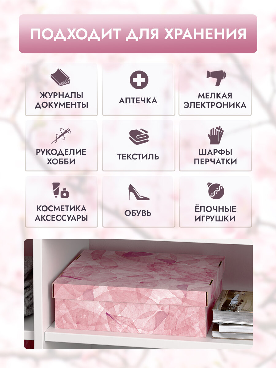 СохранитьКоробки для хранения вещей, игрушек, для подарка с крышкой, картонная, набор 4 шт, HERBARIUM SAKURA интересное: