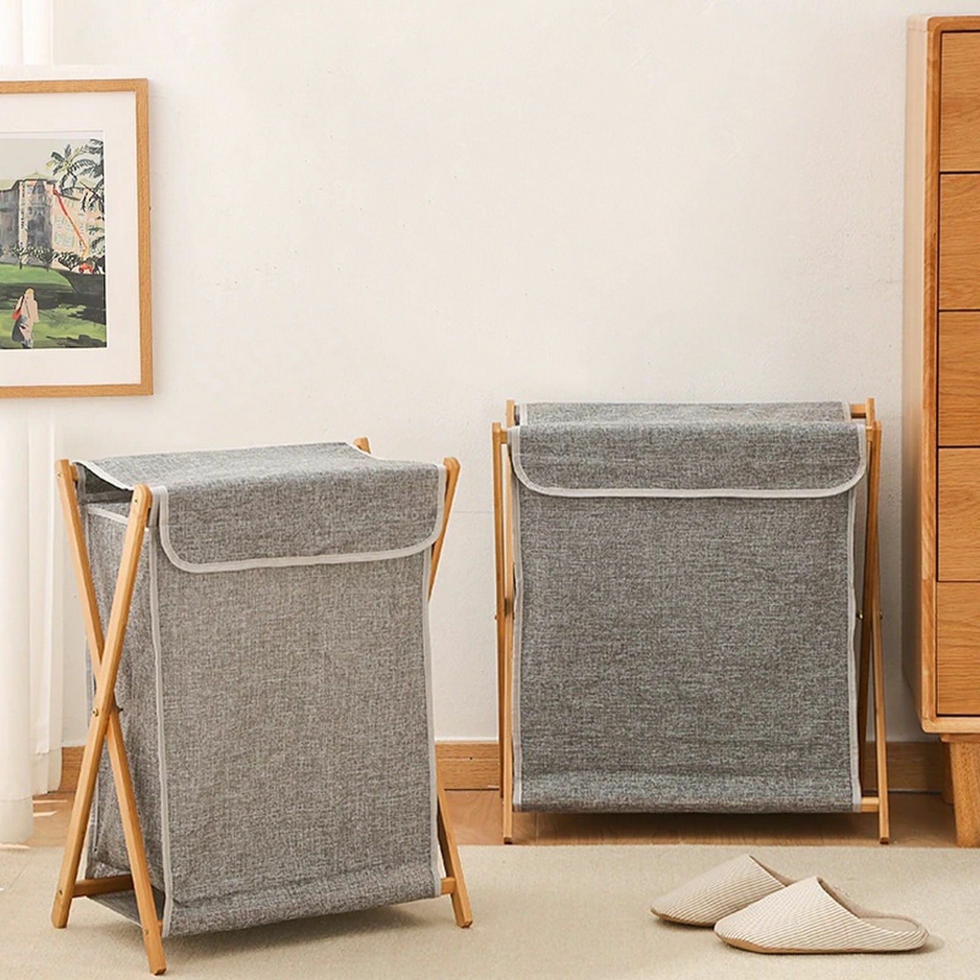 Корзина для белья You build home, бамбуковый каркас, влагостойкая, серая, 56x30x40 см интересное: