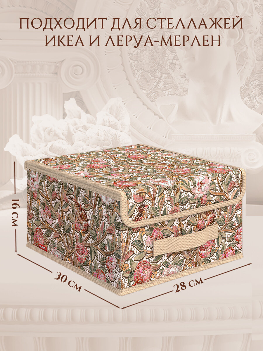 Купить Коробка для хранения вещей с крышкой, короб для хранения стеллажный, корзина, ящик, 28*30*16 см, OPUS ROMANO FLORA