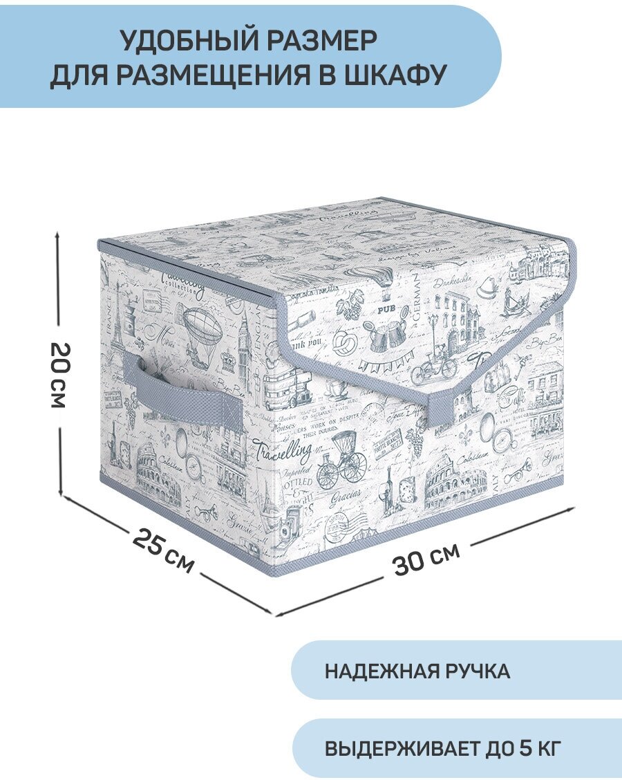СохранитьКороб стеллажный с крышкой, коробка для хранения вещей, органайзер для хранения, ящик, 30*25*20 см, TRAVELLING INDIGO интересное: