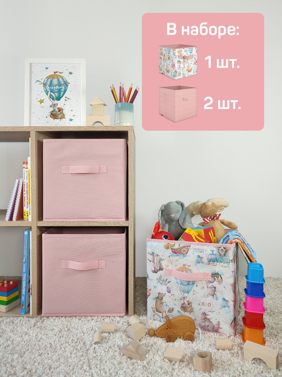 СохранитьКоробки для хранения вещей, короб для хранения стеллажный, ящик, корзина, набор 3 шт, 28*28*28 см, путешастики PINK интересное: