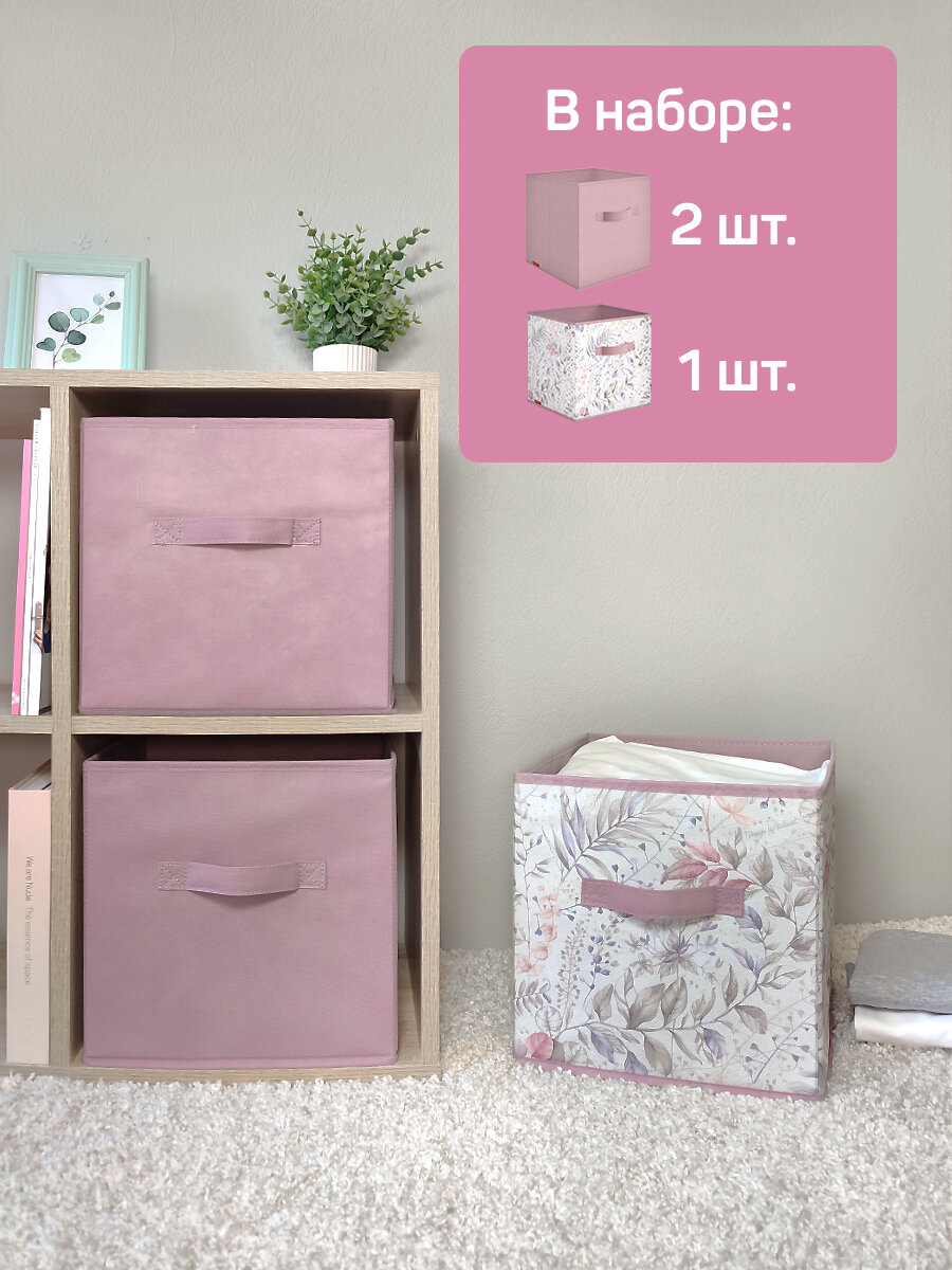 СохранитьКоробки для хранения вещей, короб для хранения стеллажный, ящик, корзина, набор 3 шт, 28*28*28 см, BOTANIC LILAC интересное: