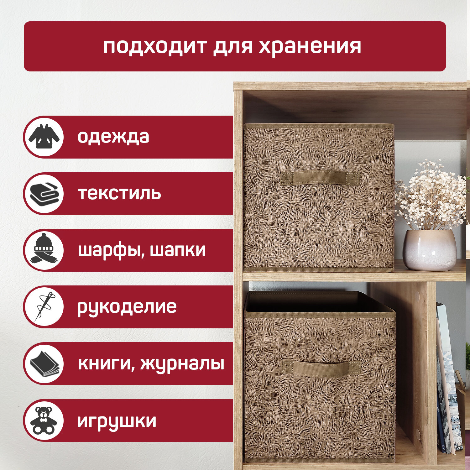 СохранитьКоробки для хранения вещей, короб для хранения стеллажный, ящик, корзина, набор 3 шт, 28*28*28 см, MONET AUTUMN интересное: