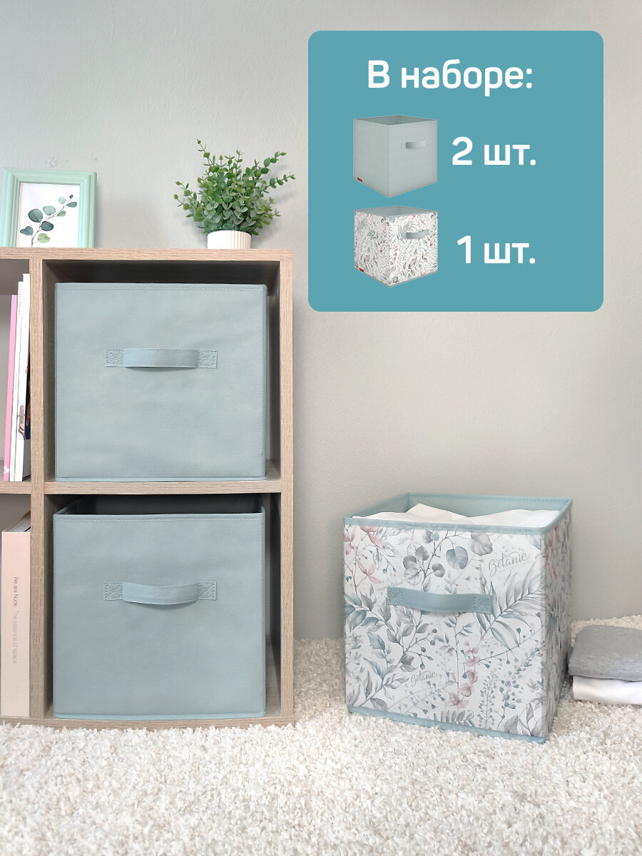 СохранитьКоробки для хранения вещей, короб для хранения стеллажный, ящик, корзина, набор 3 шт, 28*28*28 см, BOTANIC интересное: