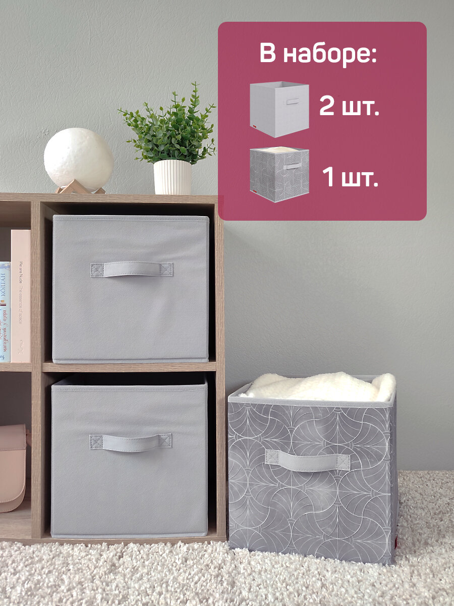 Коробки для хранения вещей, короб для хранения стеллажный, ящик, корзина, набор 3 шт, 28*28*28 см, MONET MORNING