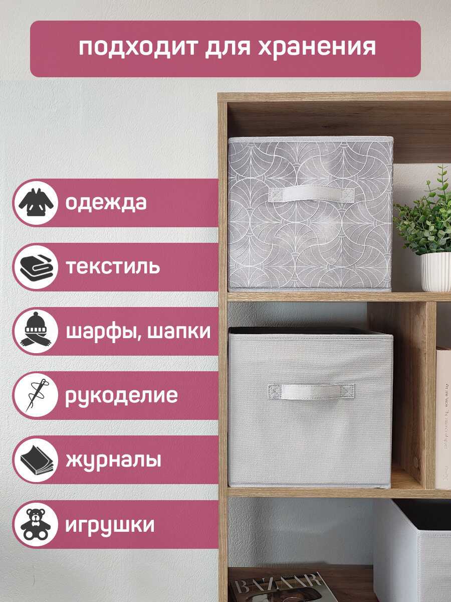 СохранитьКоробки для хранения вещей, короб для хранения стеллажный, ящик, корзина, набор 3 шт, 28*28*28 см, LINE MOON интересное:
