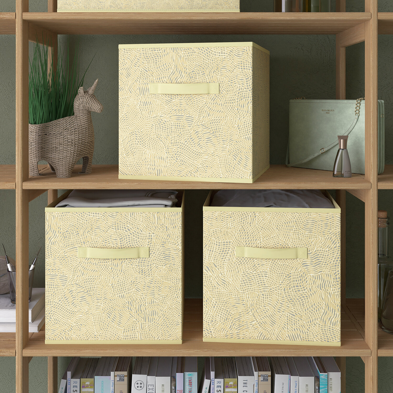 Коробки для хранения вещей, короб для хранения стеллажный, ящик, корзина, набор 3 шт, 28*28*28 см, LOVELY PETS