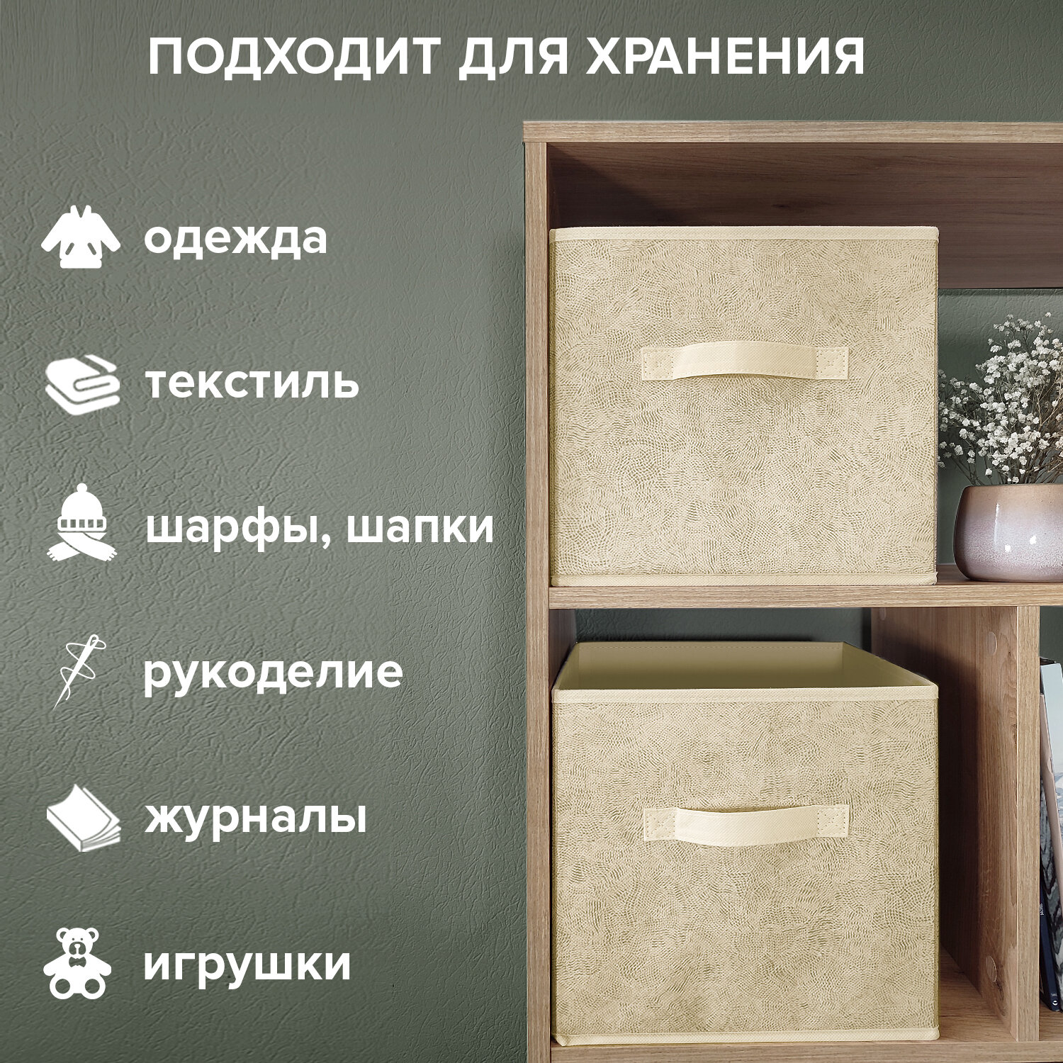 СохранитьКоробки для хранения вещей, короб для хранения стеллажный, ящик, корзина, набор 3 шт, 28*28*28 см, MONET SUMMER интересное:
