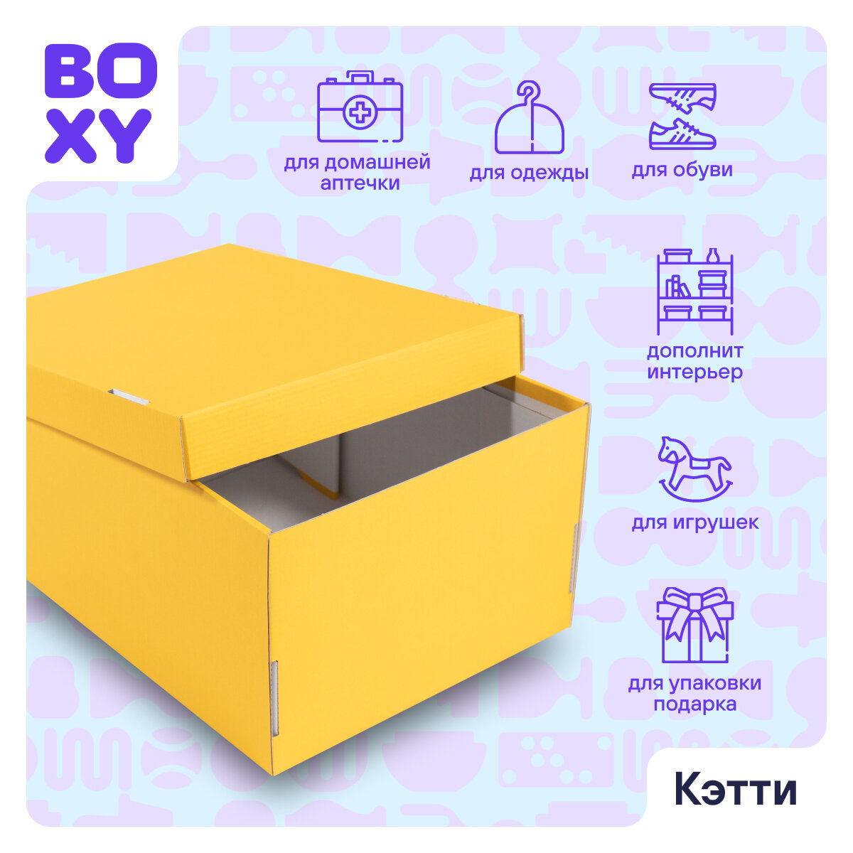 Ниже Вы можете прочитать отзывы на Коробка для интерьера и организации хранения вещей кэтти BOXY, гофрокартон, желтый, 32х26х17 см, 5 шт в упаковке, ознакомится с подробными характеристиками, посмотреть интересные обзоры и фотографии на Коробка для интерьера и организации хранения вещей кэтти BOXY, гофрокартон, желтый, 32х26х17 см, 5 шт в упаковке.