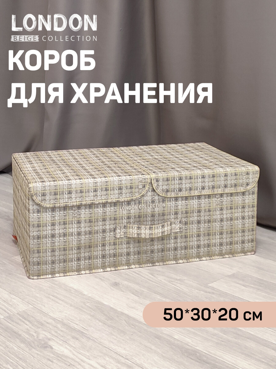 Купить Коробка для хранения вещей с крышкой, короб для хранения стеллажный, корзина, ящик с двумя отделениями, 50*30*20 см, LONDON BEIGE