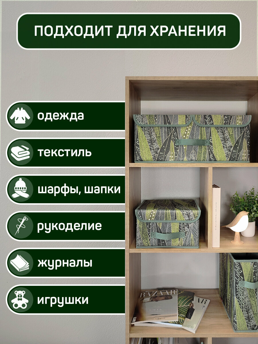 СохранитьКоробка для хранения вещей с крышкой, короб для хранения стеллажный, корзина, ящик с двумя отделениями, 50*30*20 см, GREEN интересное: