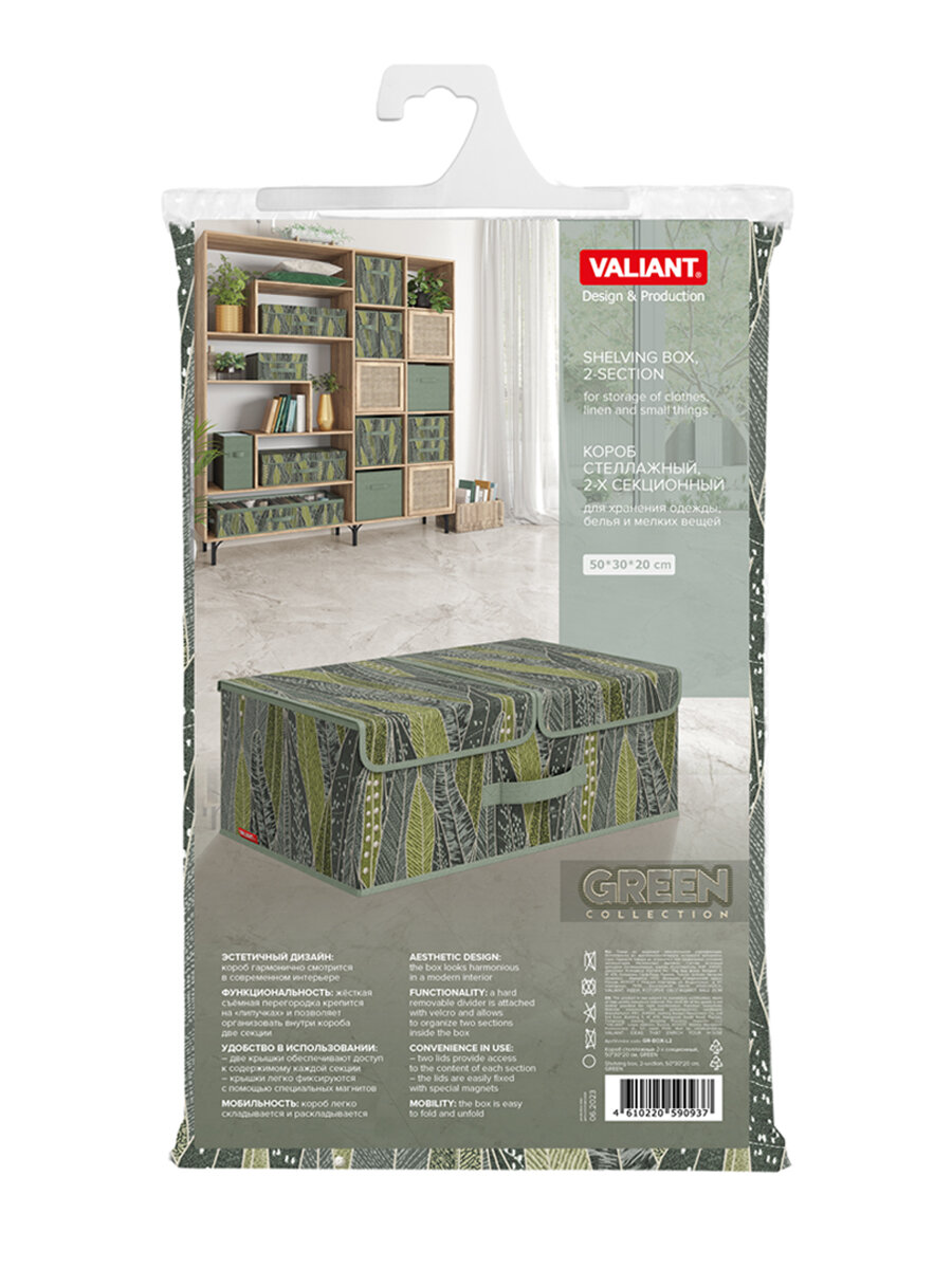 Коробка для хранения вещей с крышкой, короб для хранения стеллажный, корзина, ящик с двумя отделениями, 50*30*20 см, VALIANT