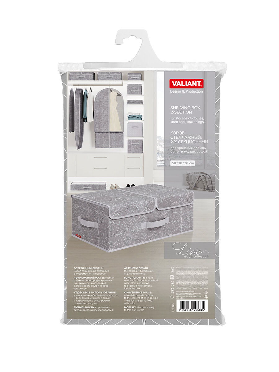 Коробка для хранения вещей с крышкой, короб для хранения стеллажный, корзина, ящик с двумя отделениями, 50*30*20 см, VALIANT