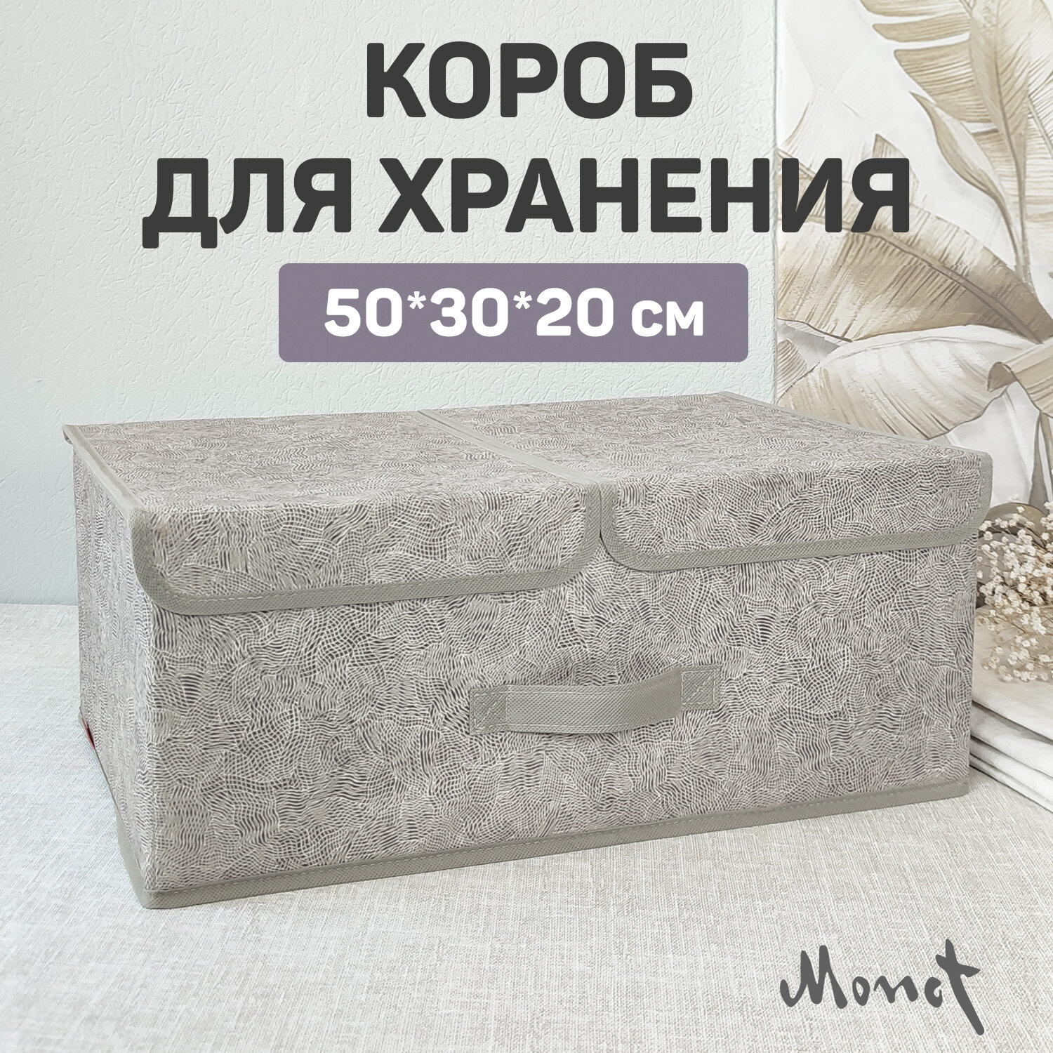 СохранитьКоробка для хранения вещей с крышкой, короб для хранения стеллажный, корзина, ящик с двумя отделениями, 50*30*20 см, MONET MORNING интересное: