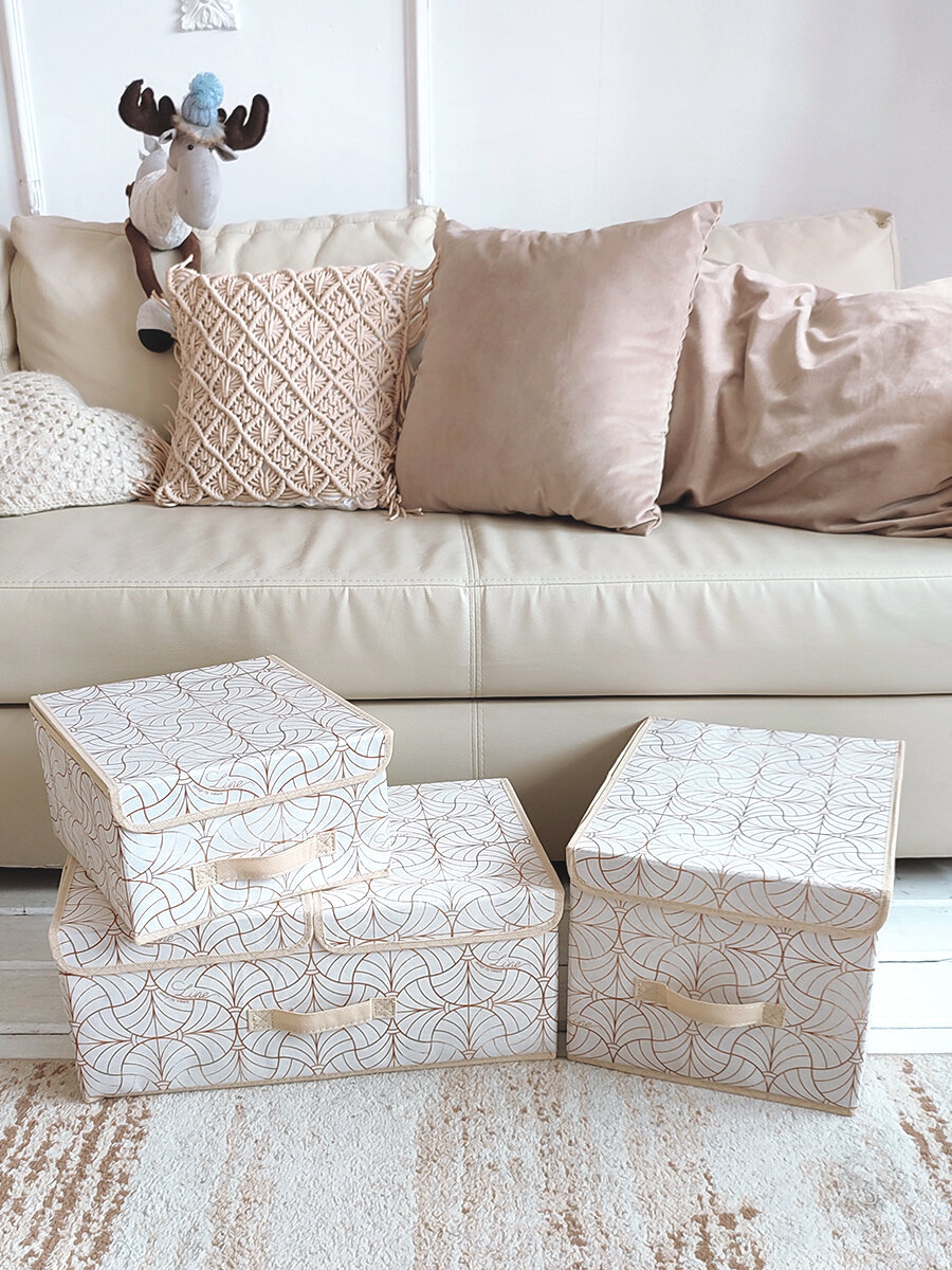 Коробка для хранения вещей с крышкой, короб для хранения стеллажный, корзина, ящик с двумя отделениями, 50*30*20 см, LONDON BEIGE