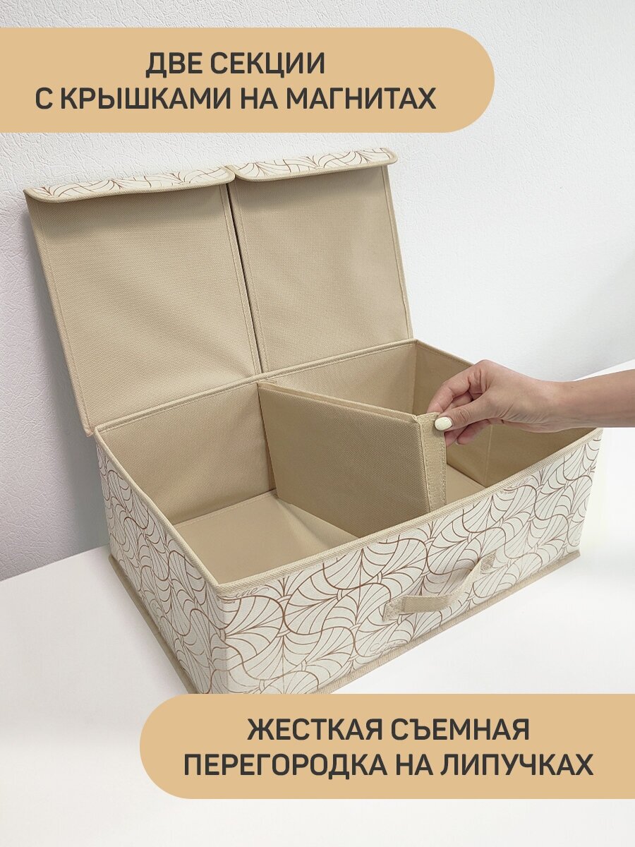 Коробка для хранения вещей с крышкой, короб для хранения стеллажный, корзина, ящик с двумя отделениями, 50*30*20 см, MONET SUMMER