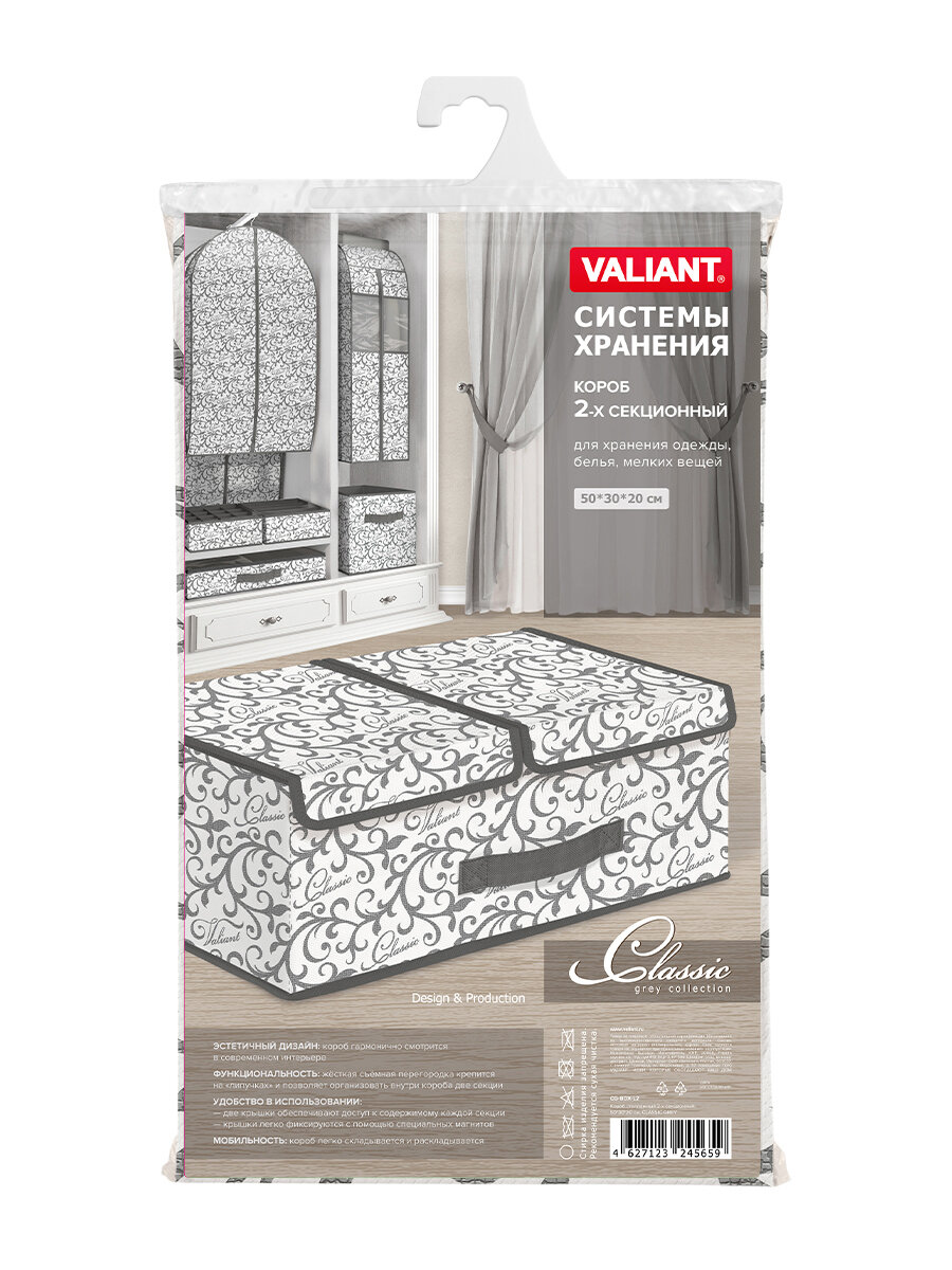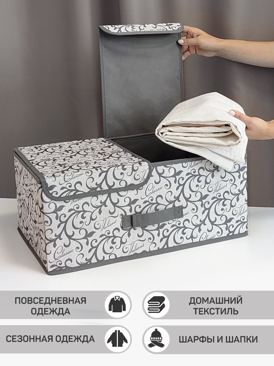 Коробка для хранения вещей с крышкой, короб для хранения стеллажный, корзина, ящик с двумя отделениями, 50*30*20 см, VALIANT