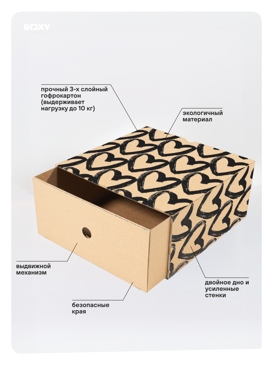 Стоун сердца выдвижная коробка для хранения 32x32x15, 5 штук в упаковке