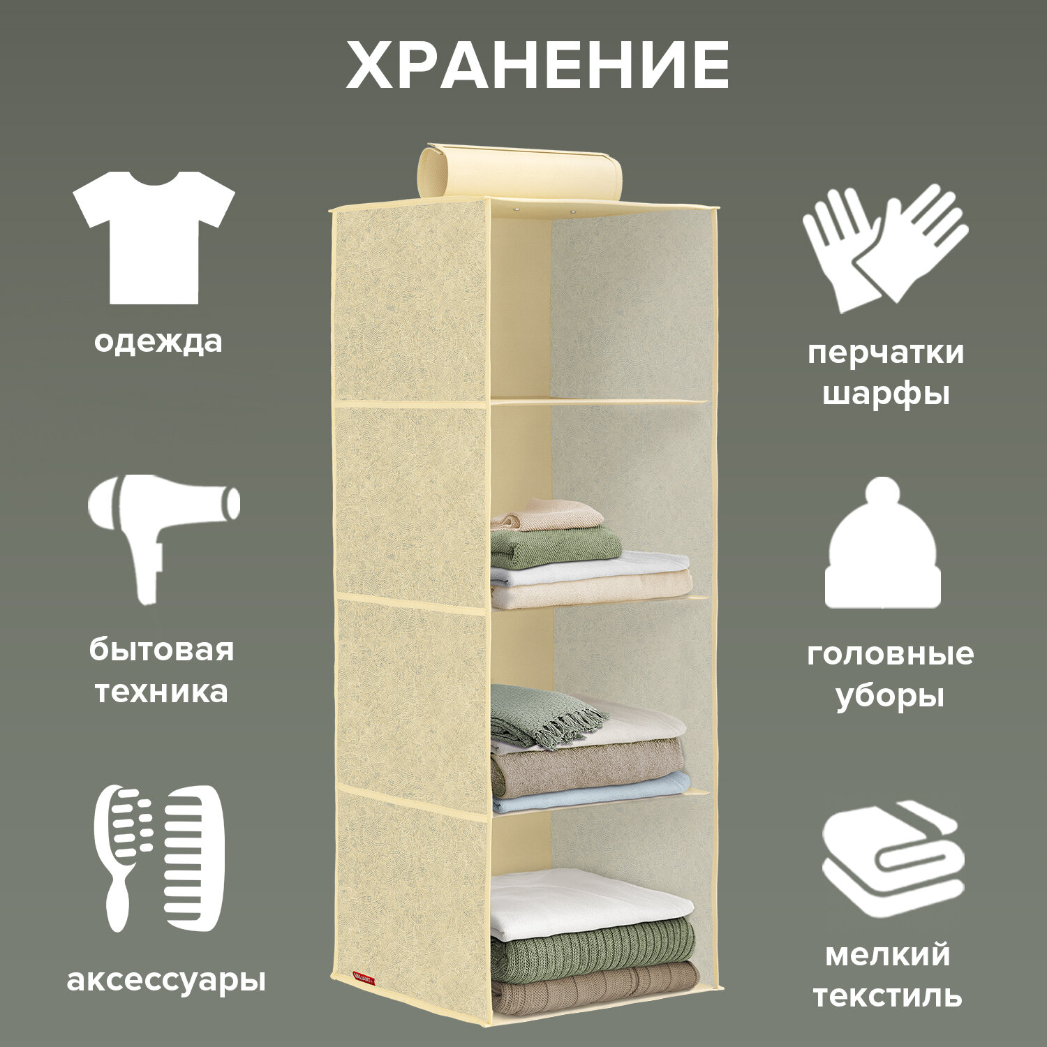 Кофр подвесной для хранения, 4 секции, 30*30*84 см, BOTANIC
