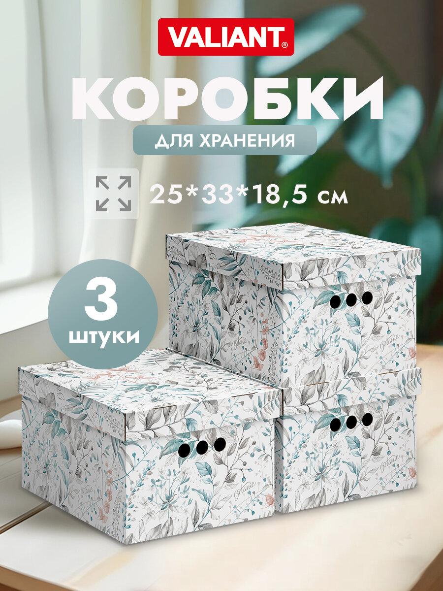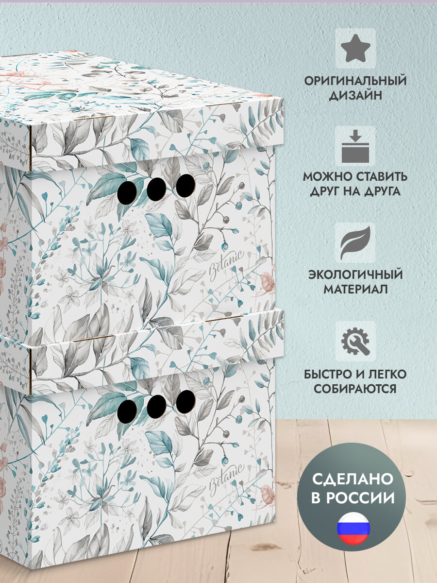 Купить Коробки для хранения вещей, игрушек, обуви, картонные, короб для хранения с крышкой, 25*33*18,5 см, набор 3 шт, BOTANIC
