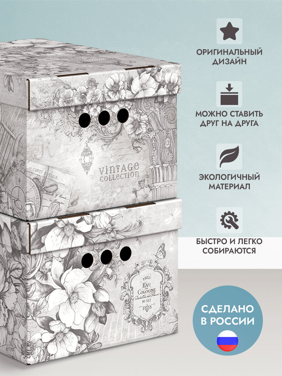 СохранитьКороба картонные, 25*33*18.5 см, набор 3 шт, VINTAGE GREY интересное:
