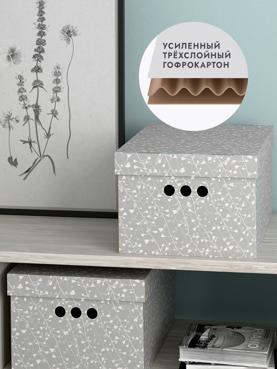 СохранитьКоробки для хранения вещей, игрушек, обуви, картонные, короб для хранения с крышкой, 25*33*18,5 см, набор 3 шт, BOTANIC GREY интересное: