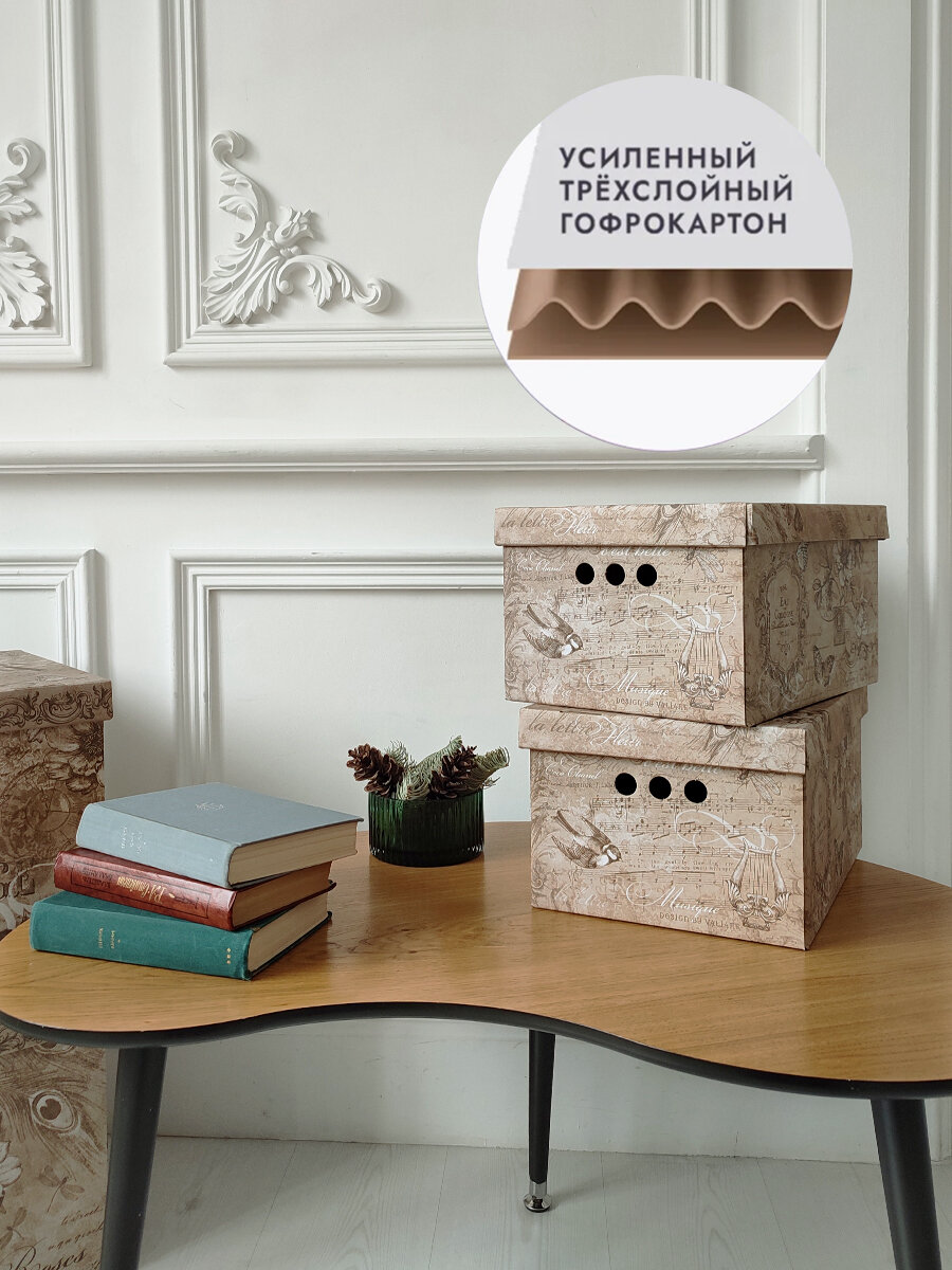 Коробки для хранения вещей, игрушек, обуви, картонные, короб для хранения с крышкой, 25*33*18,5 см, набор 3 шт, BOTANIC
