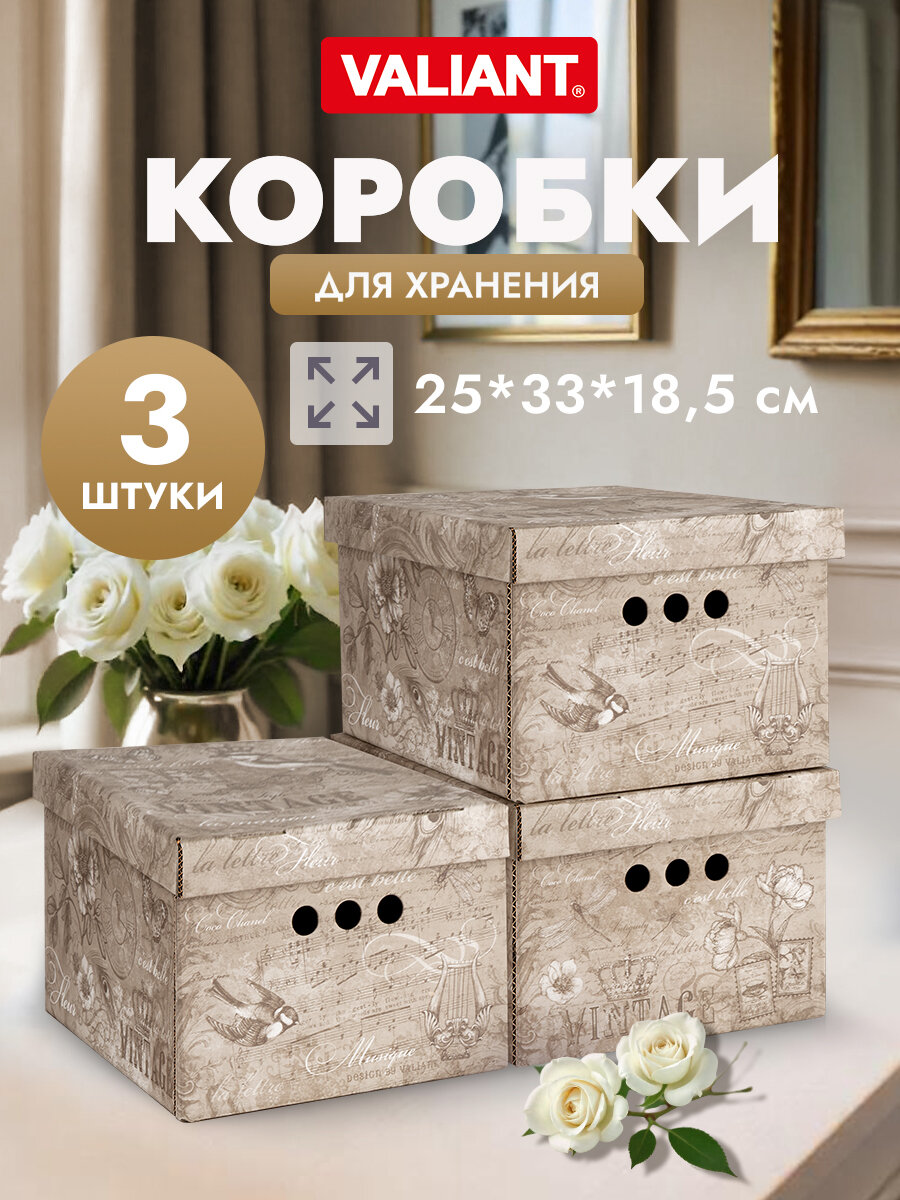 СохранитьКороба картонные, 25*33*18.5 см, набор 3 шт, VINTAGE интересное: