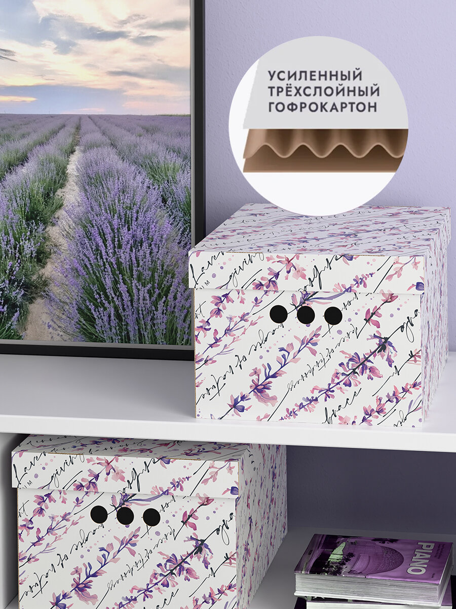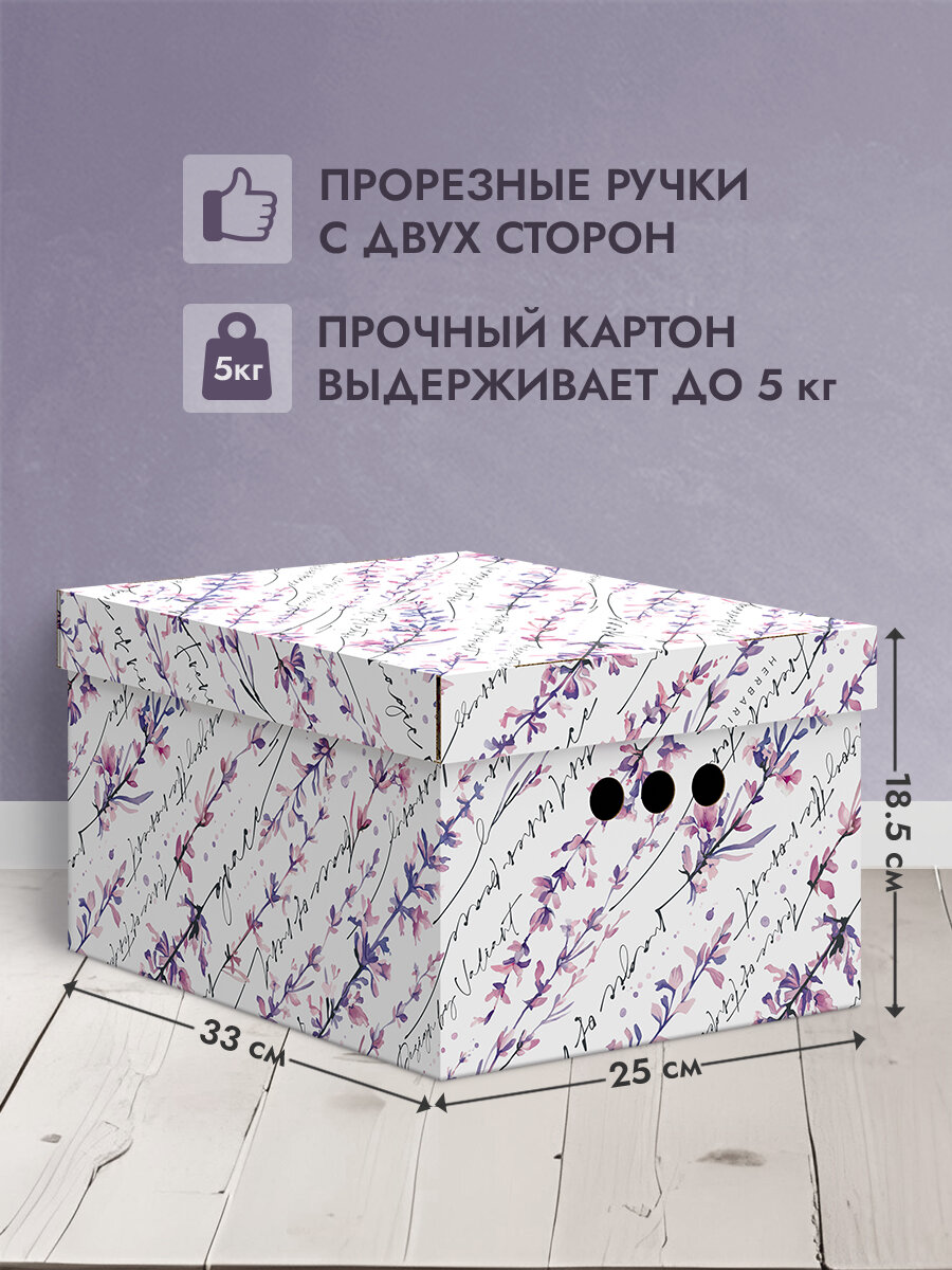 СохранитьКоробки для хранения вещей, игрушек, обуви, картонные, короб для хранения с крышкой, 25*33*18,5 см, набор 3 шт, HERBARIUM LAVENDER интересное:
