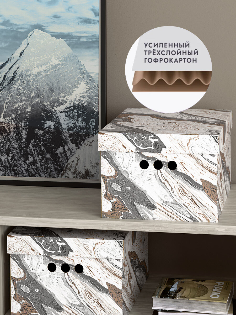 Коробки для хранения вещей, игрушек, обуви, картонные, короб для хранения с крышкой, 25*33*18,5 см, набор 3 шт, BOTANIC