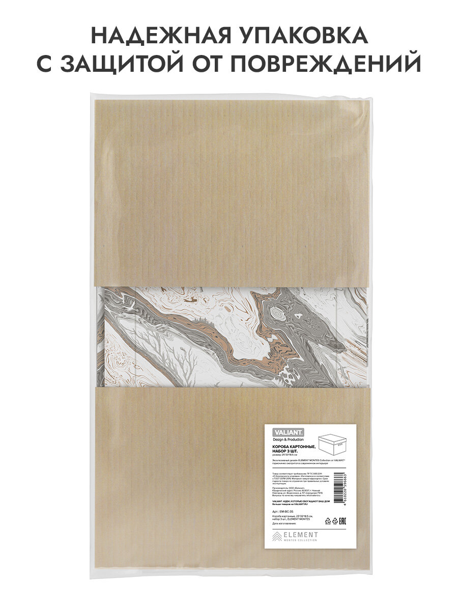 Купить Коробки для хранения вещей, игрушек, обуви, картонные, короб для хранения с крышкой, 25*33*18,5 см, набор 3 шт, ELEMENT MONTES