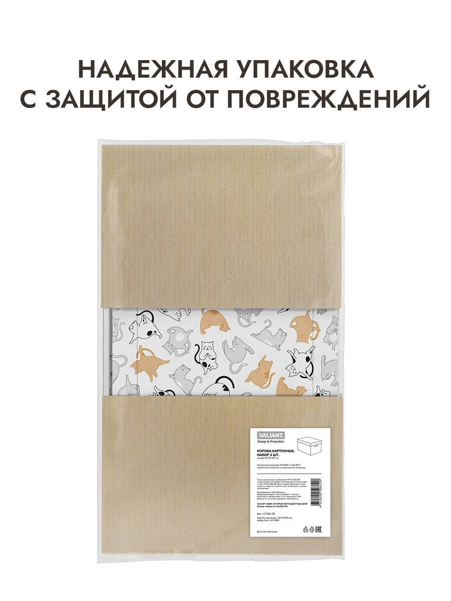 СохранитьКоробки для хранения вещей, игрушек, обуви, картонные, короб для хранения с крышкой, 25*33*18,5 см, набор 3 шт, котики интересное: