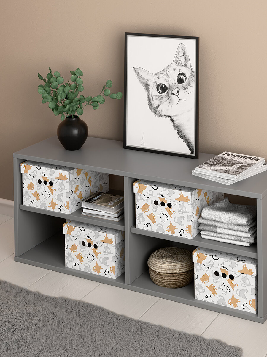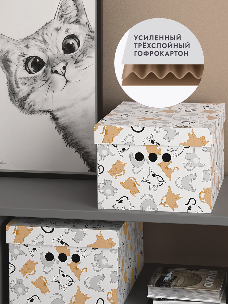 Купить Коробки для хранения вещей, игрушек, обуви, картонные, короб для хранения с крышкой, 25*33*18,5 см, набор 3 шт, котики