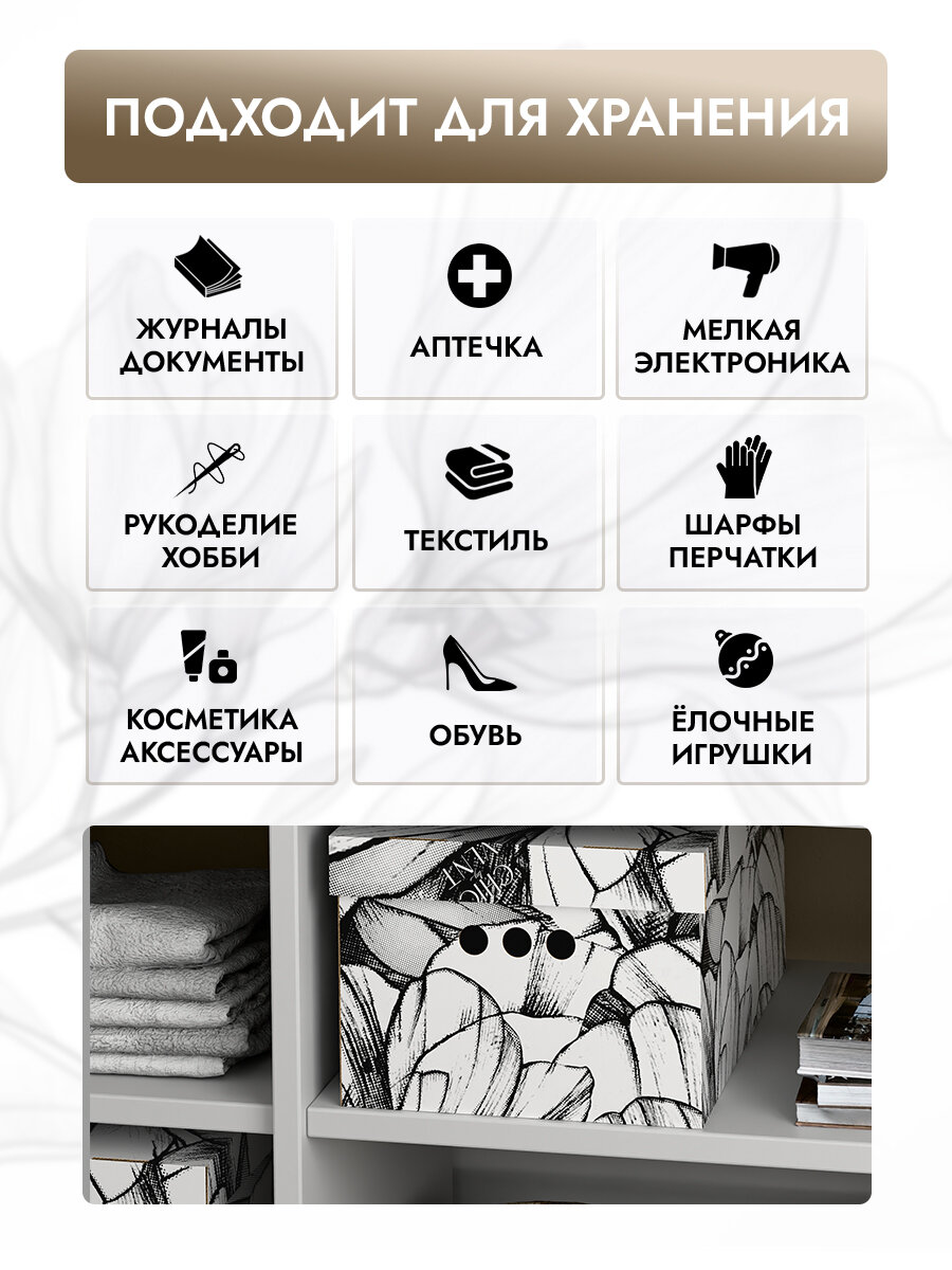 СохранитьКоробки для хранения вещей, игрушек, обуви, картонные, короб для хранения с крышкой, 25*33*18,5 см, набор 3 шт, CHIC интересное: