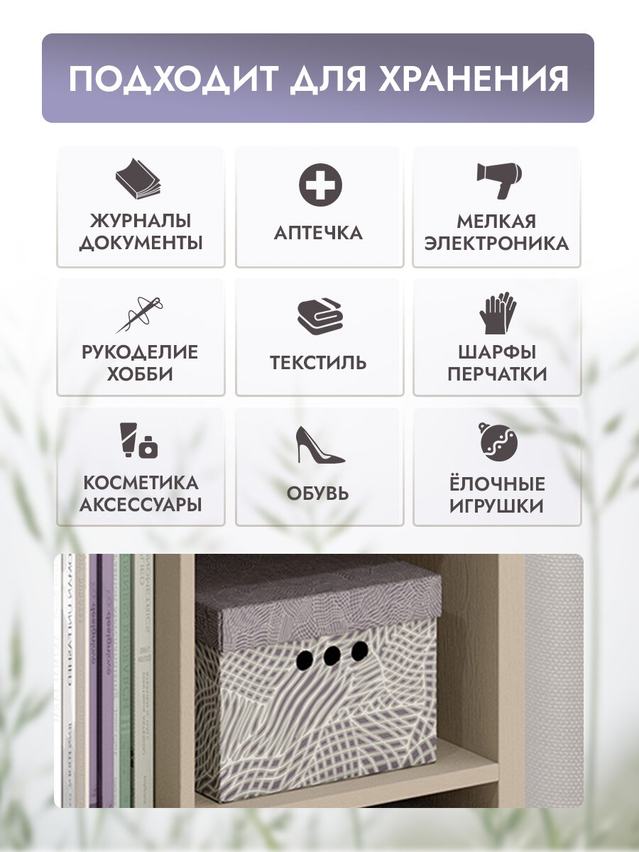 Коробки для хранения вещей, игрушек, обуви, картонные, короб для хранения с крышкой, 25*33*18,5 см, набор 3 шт, HERBARIUM LAVENDER