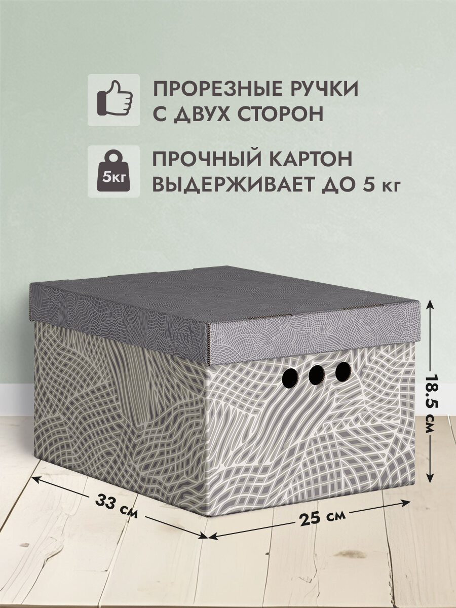 Коробки для хранения вещей, игрушек, обуви, картонные, короб для хранения с крышкой, 25*33*18,5 см, набор 3 шт, ELEMENT MONTES