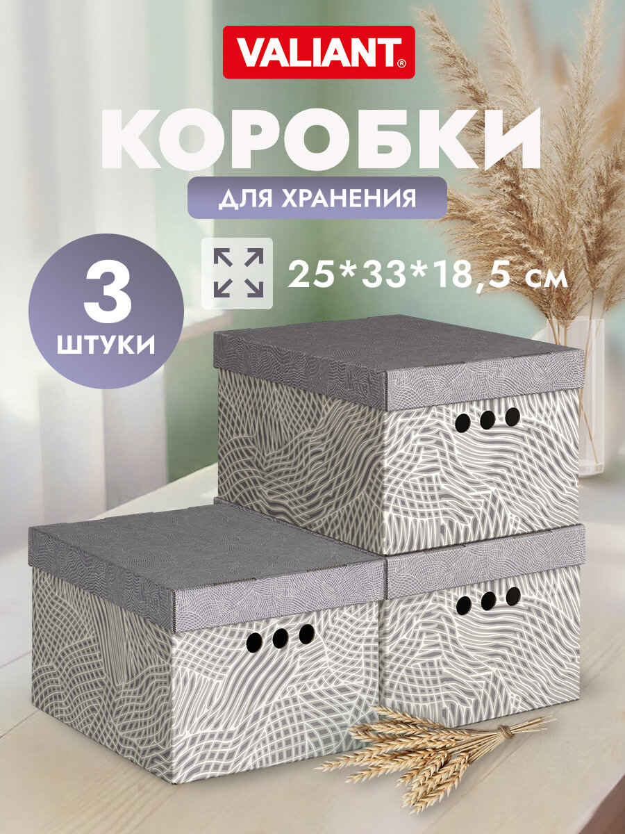 Коробки для хранения вещей, игрушек, картонные, короб для хранения с крышкой, 25*33*18,5 см, набор 3 шт, TRAVELLING