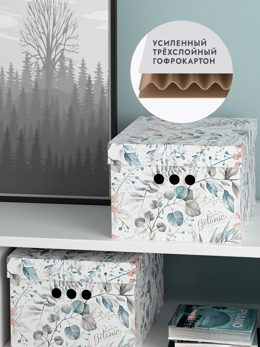СохранитьКоробки для хранения вещей, игрушек, обуви, картонные, короб для хранения с крышкой, 25*33*18,5 см набор 4 шт, Botanic Light интересное: