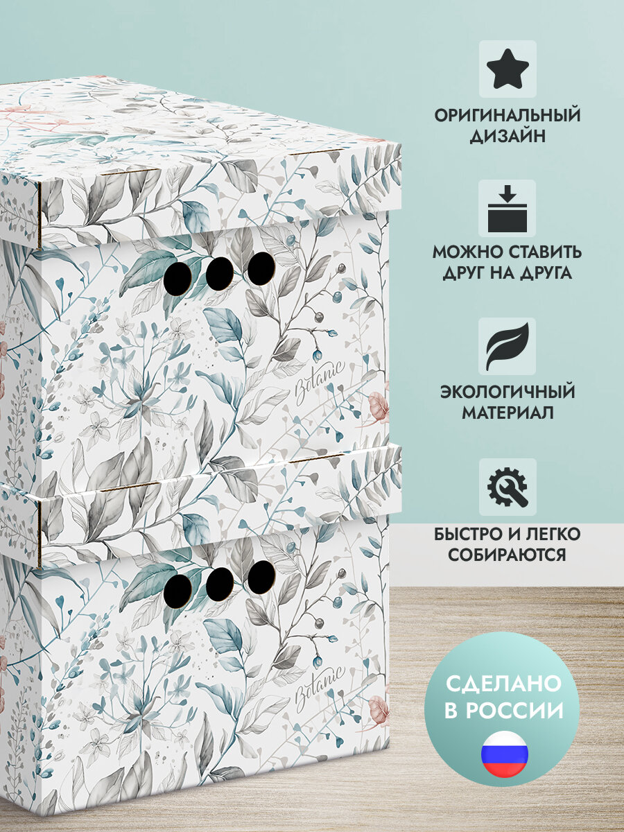 Купить Коробки для хранения вещей, игрушек, обуви, картонные, короб для хранения с крышкой, 25*33*18,5 см набор 4 шт, Botanic Light