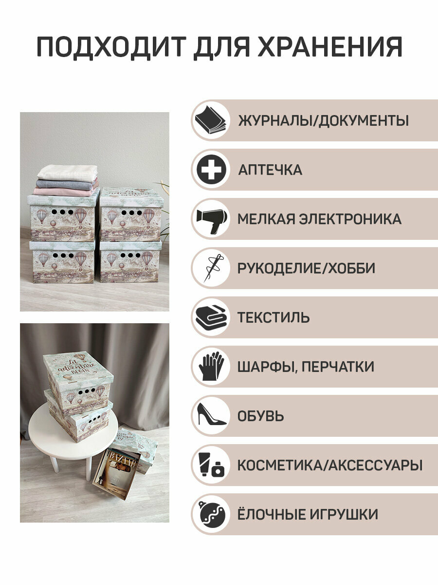 Коробки для хранения вещей, игрушек, картонные, короб для хранения с крышкой, 25*33*18,5 см набор 4 шт, TRAVELLING AIR