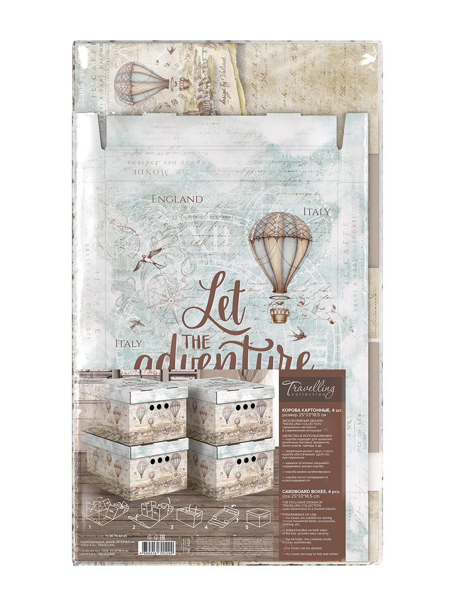 Короб картонный, малый, 25*33*18.5 см, монохром, набор 4 шт, TRAVELLING AIR