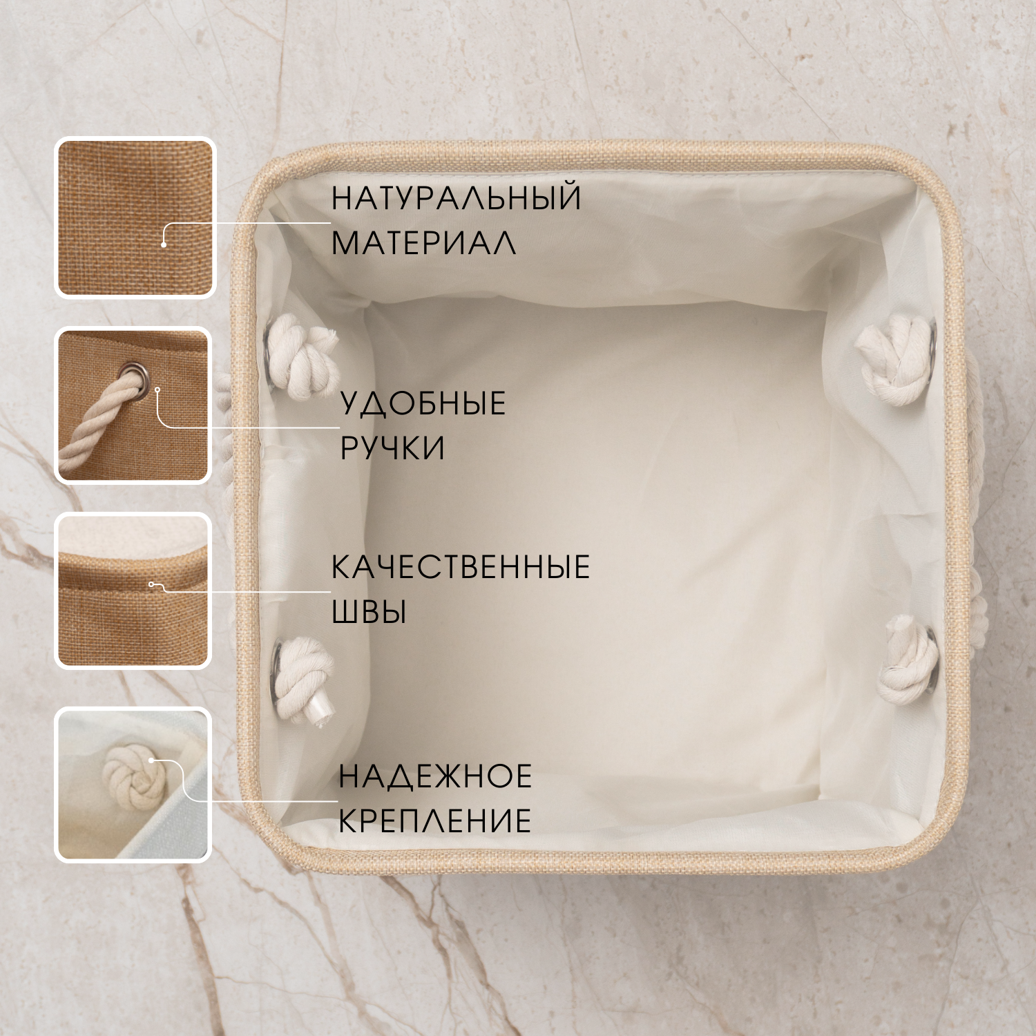 Текстильная корзина для хранения / HOMO / 28*28*28, 22 литра / цвет: бежевый