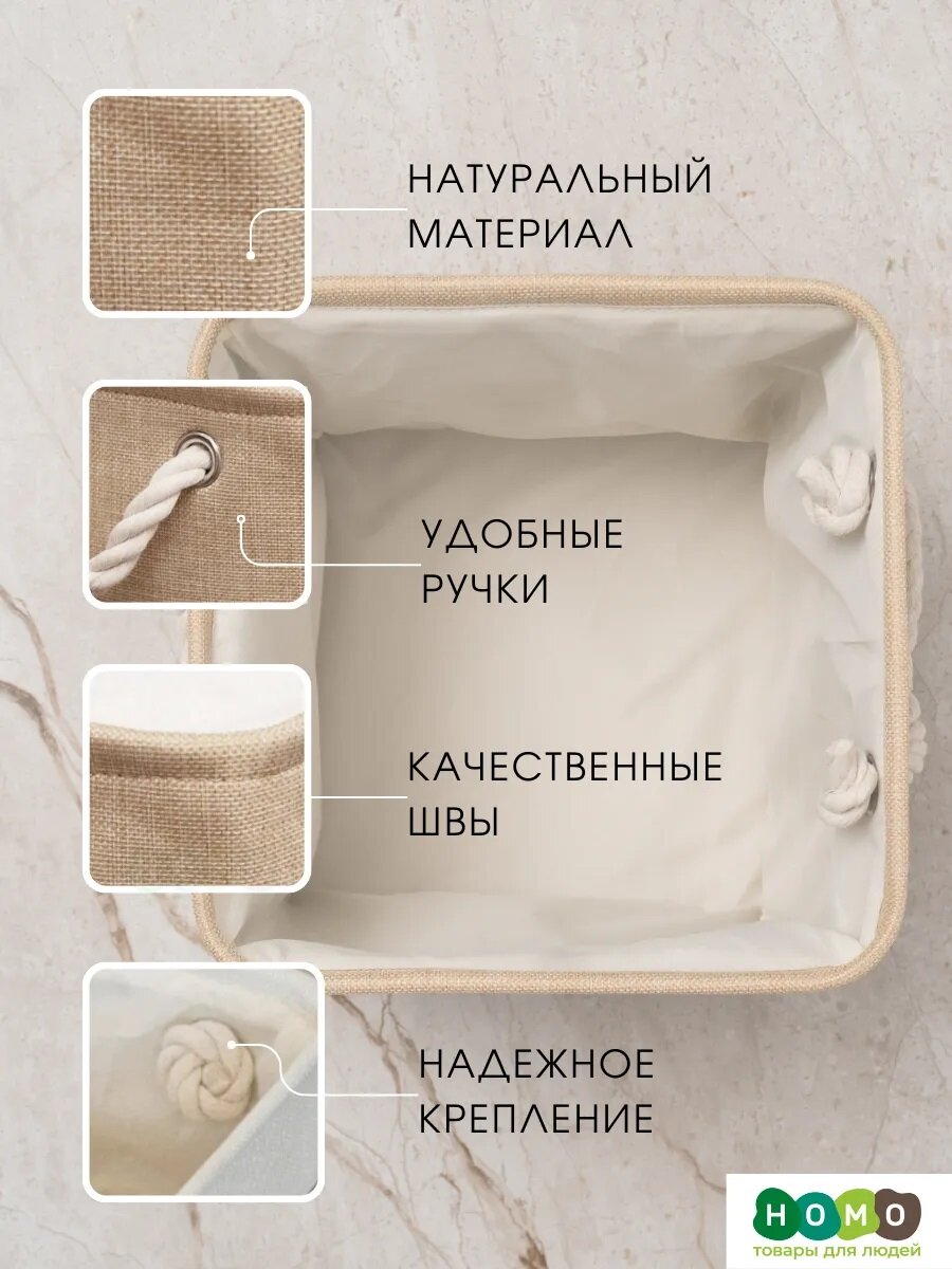 Текстильная корзина для хранения / HOMO / 28*28*28, 22 литра / цвет: бежевый