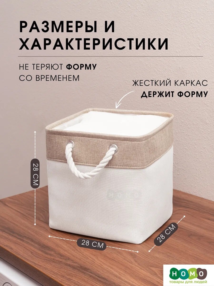 Текстильная корзина для хранения / HOMO / 28*28*28, 22 литра / цвет: св. бежевый, белый, 2 шт