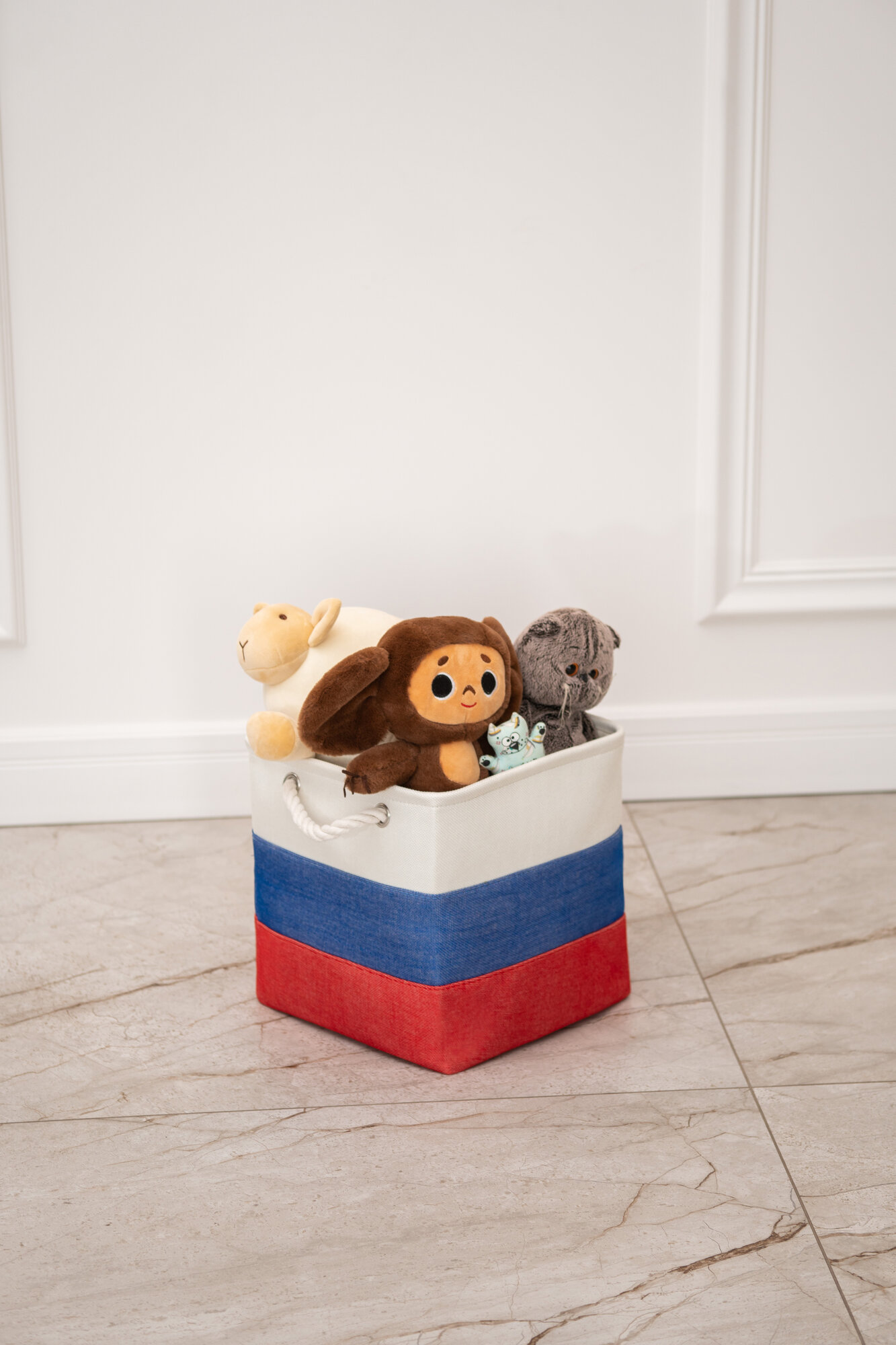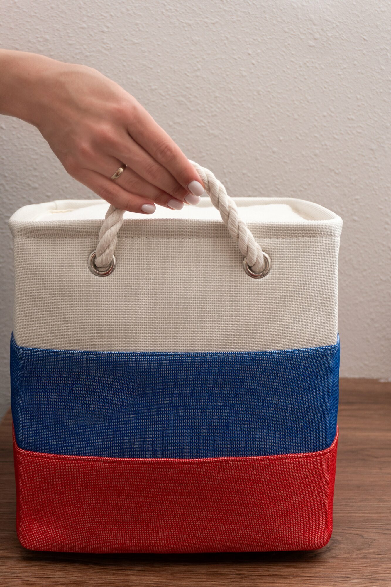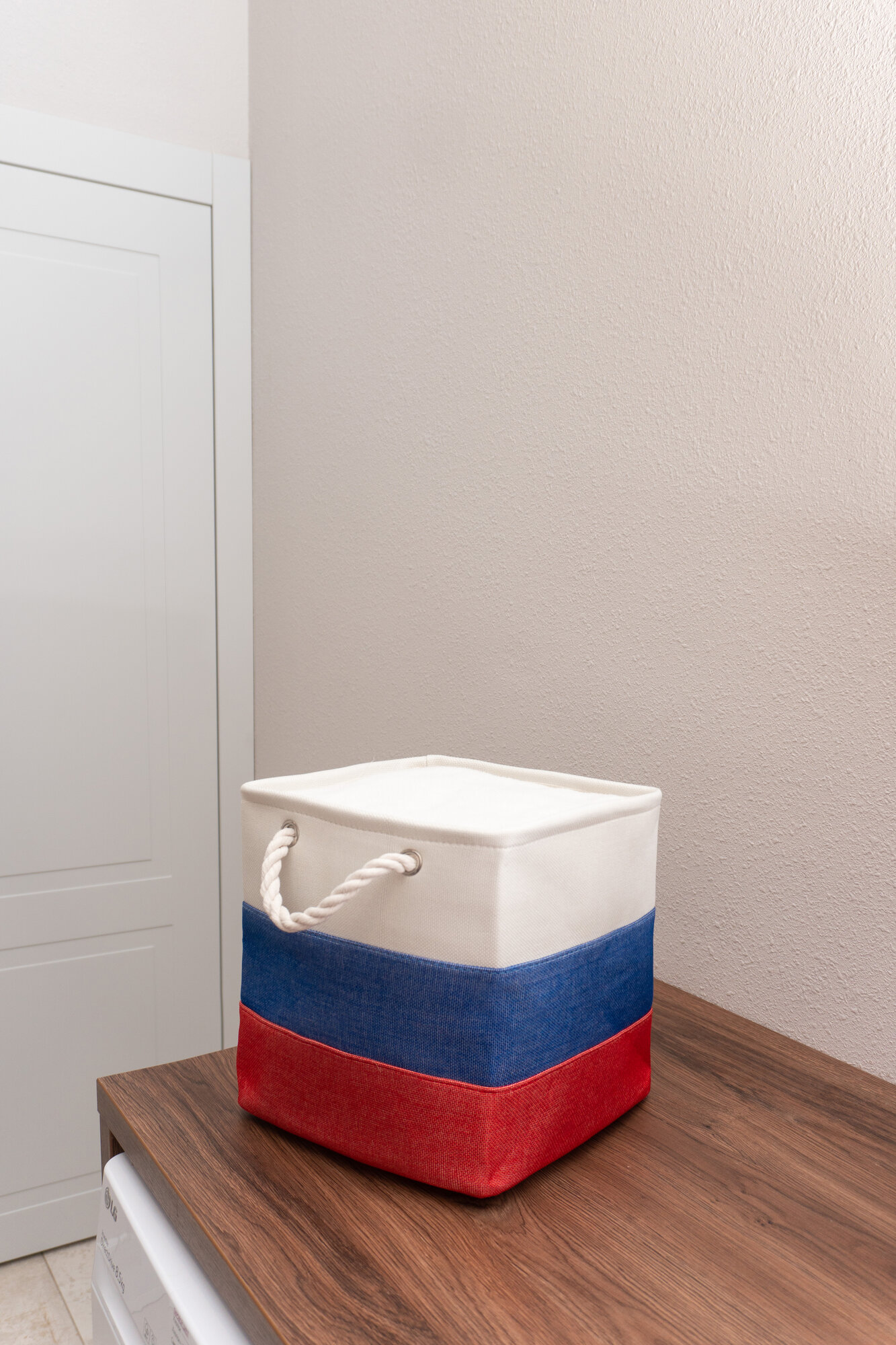 Текстильная корзина для хранения / HOMO / 28*28*28, 22 литра / цвет: св. белый, синий, красный