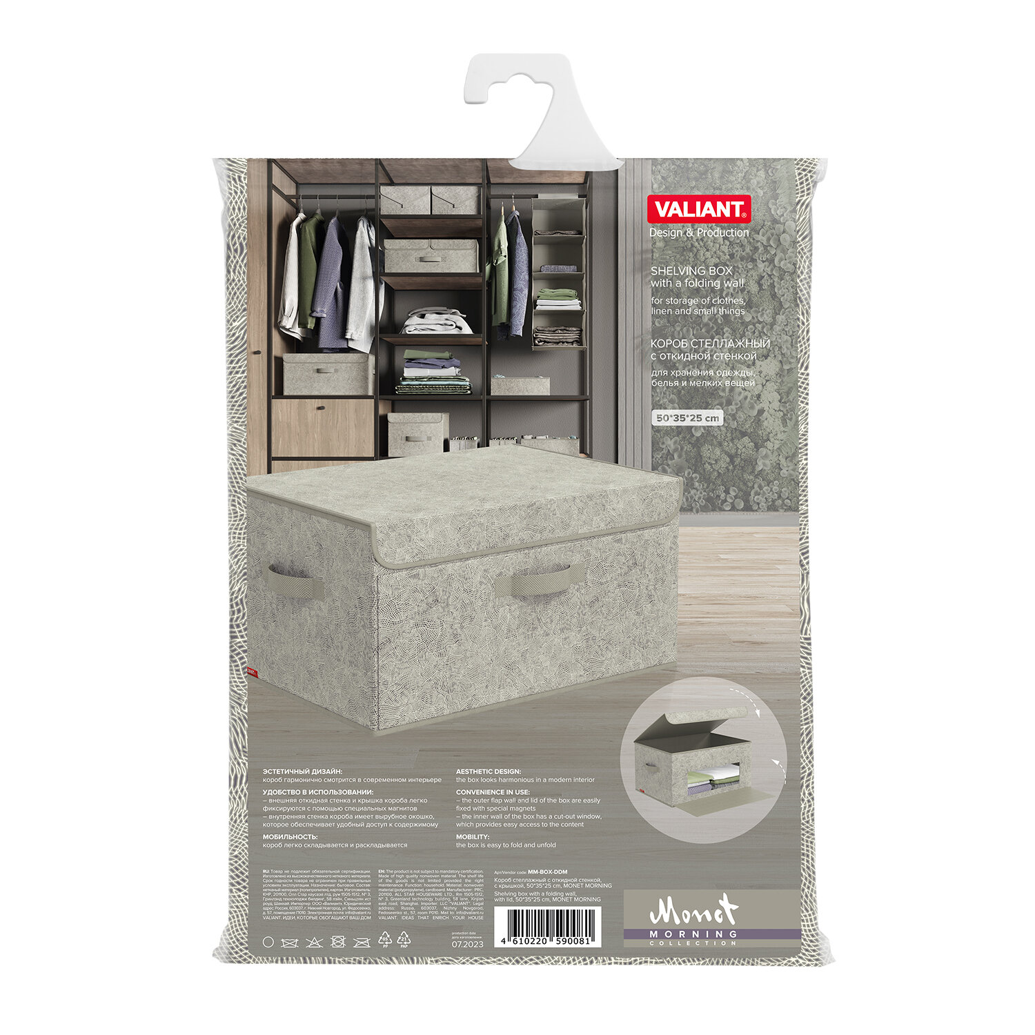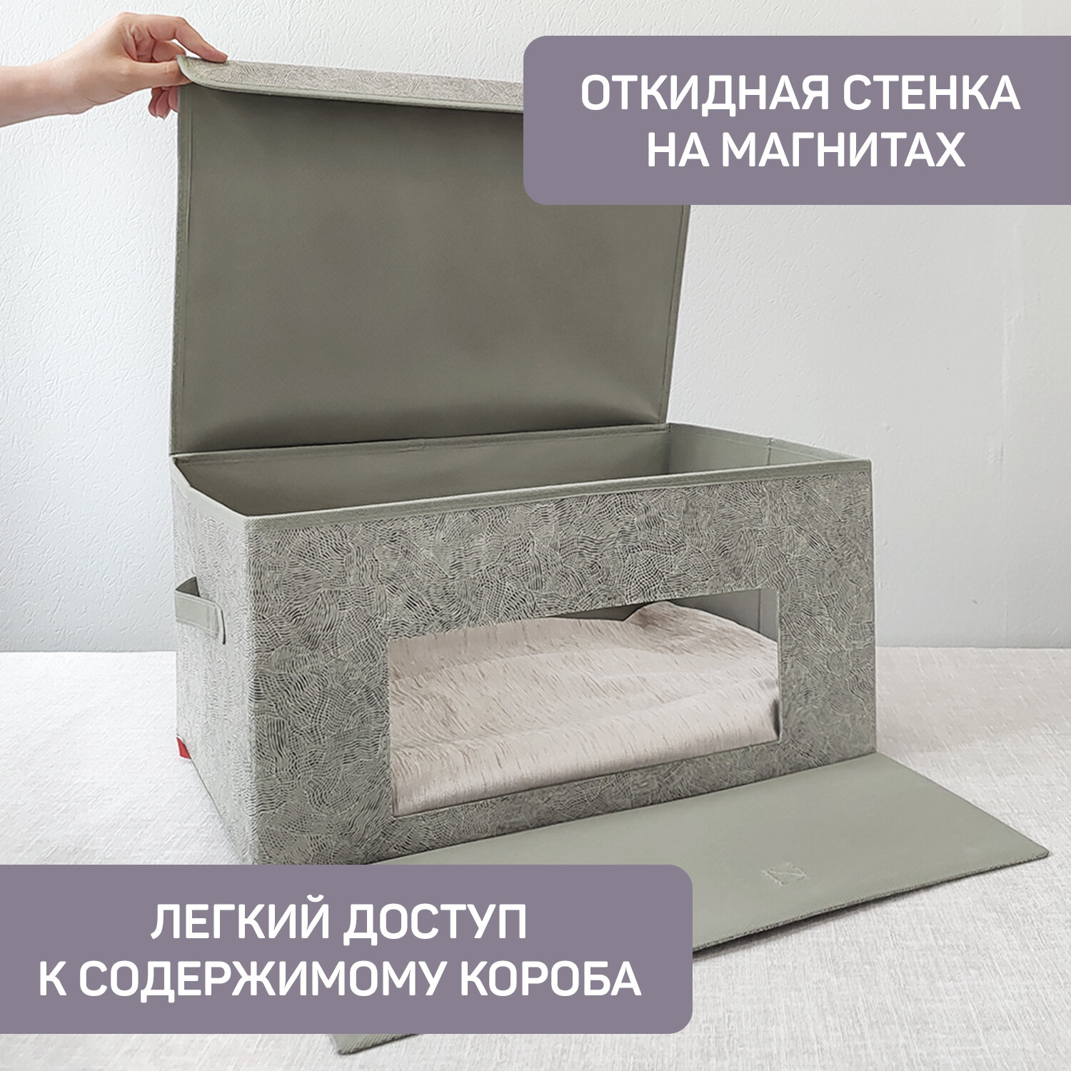 СохранитьКоробка для хранения вещей с крышкой, короб для хранения стеллажный, корзина, ящик с откидной стенкой, 50*35*25 см, MONET MORNING интересное: