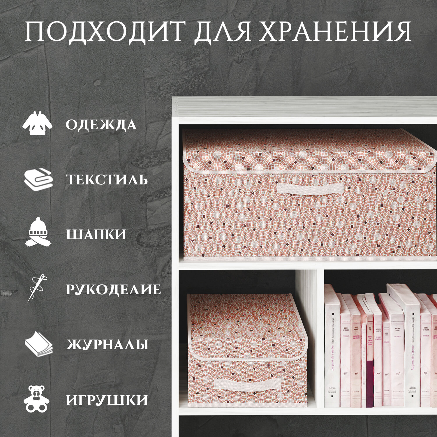 Коробка для хранения вещей с крышкой, короб для хранения стеллажный, корзина, ящик, 28*30*16 см, VALIANT BOTANIC