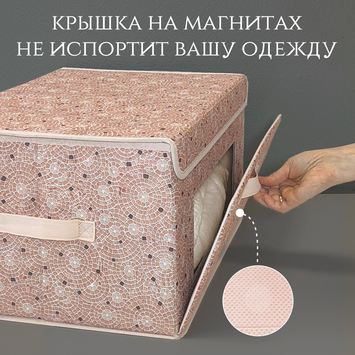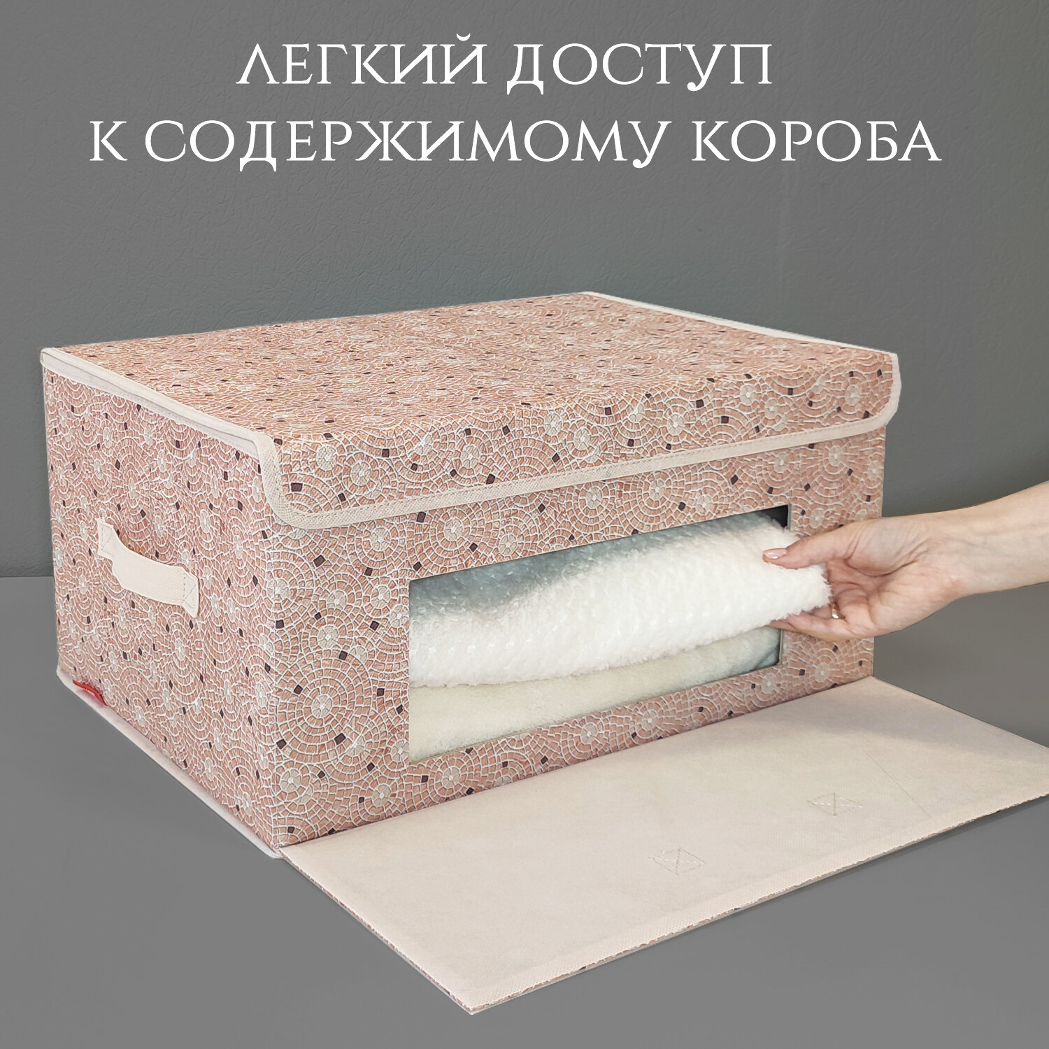 Коробка для хранения вещей с крышкой, короб для хранения стеллажный, корзина, ящик с откидной стенкой, 50*35*25 см, MONET MORNING